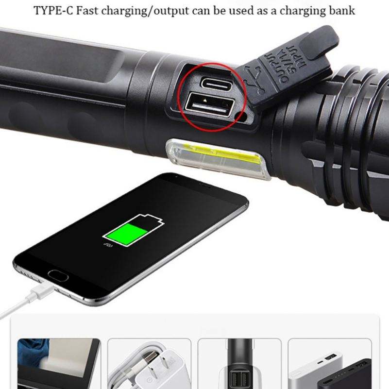 WOSEN Xhp50+Cob Red and White Light Strong Light Zoom Rechargeable Flashlight Power Display Type-C Charging Torch