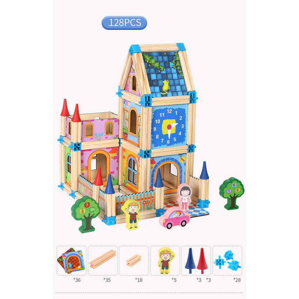 WUDLY Master of Architecture Wooden Building Blocks Toy Set Educational Construction Play