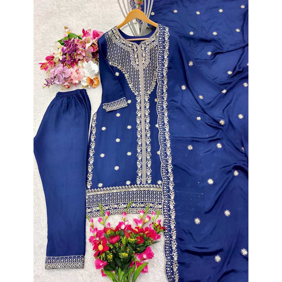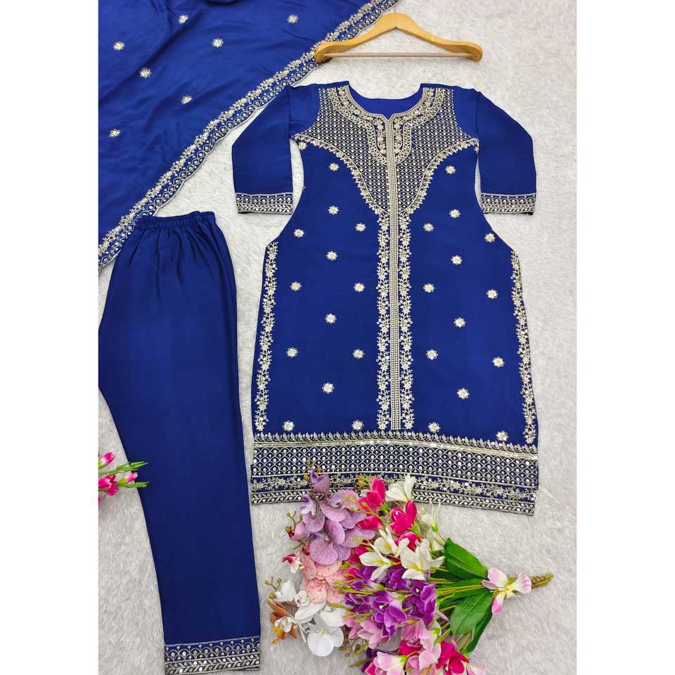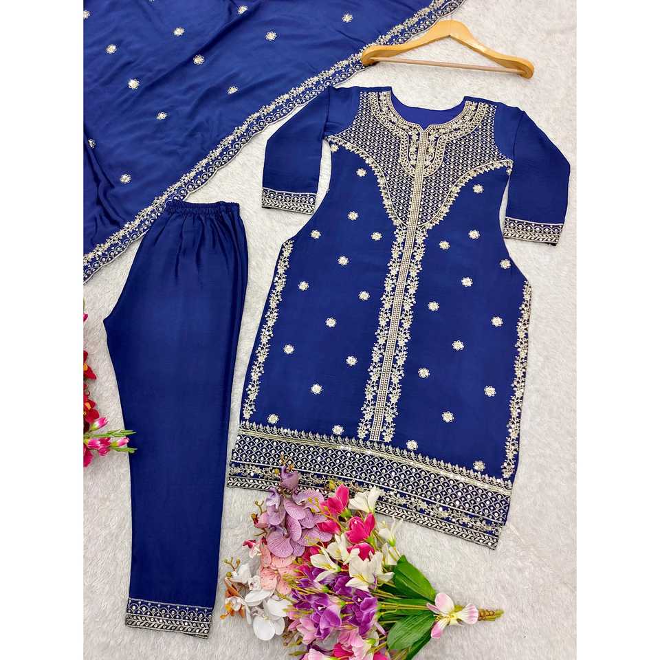 WW Blue Embroidered Party Wear Top and Dupatta with Sequence Work for Prom Dresses Size L