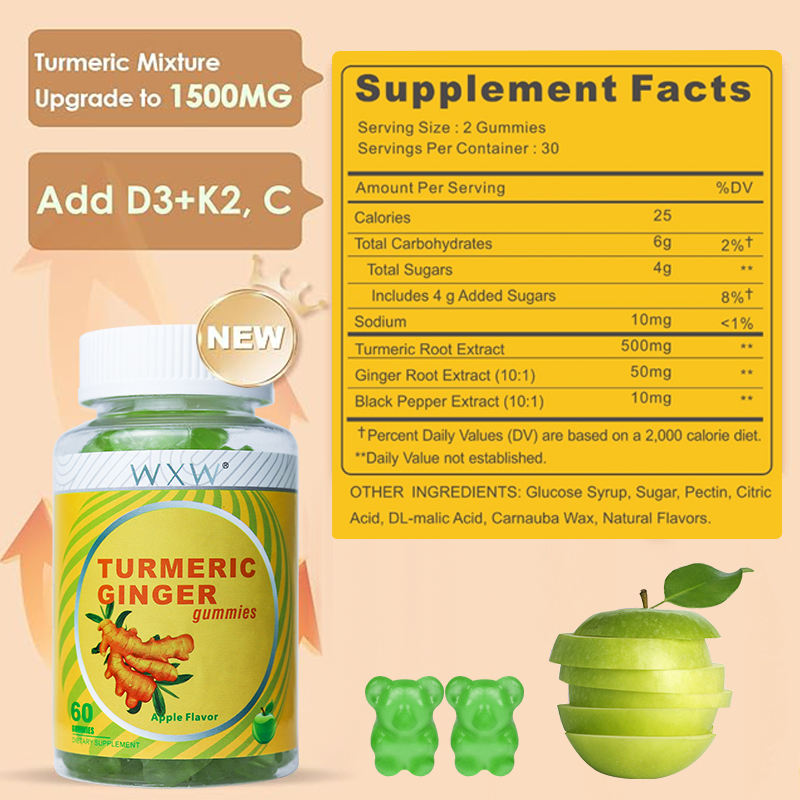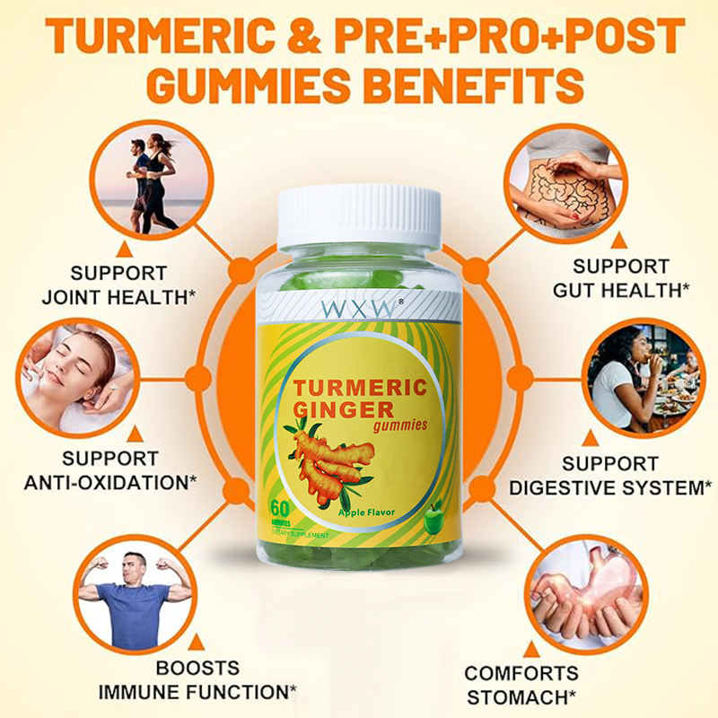 WXW Stock Turmeric Gummies Sugar Free Vegan Tumeric Ginger Gummies Promote Digestion boost Muscle&bone Turmeric Crcumin Gummy