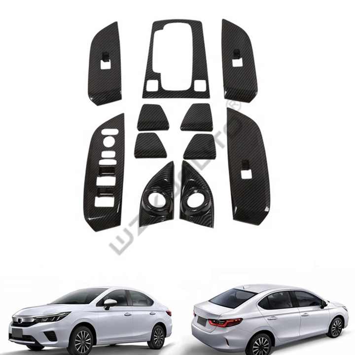 WZXD RHD ABS Plastic Carbon Interior Decoration Accessories Window Switch Shift Cover for City 2020 2021