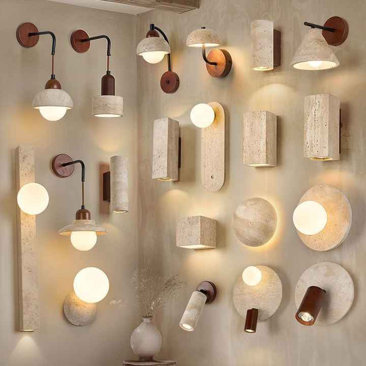 Wabi Sabi New Design Cave Stone Travertine Wall Lamp Sconce Living Room Bedroom Hotels Bedside Light