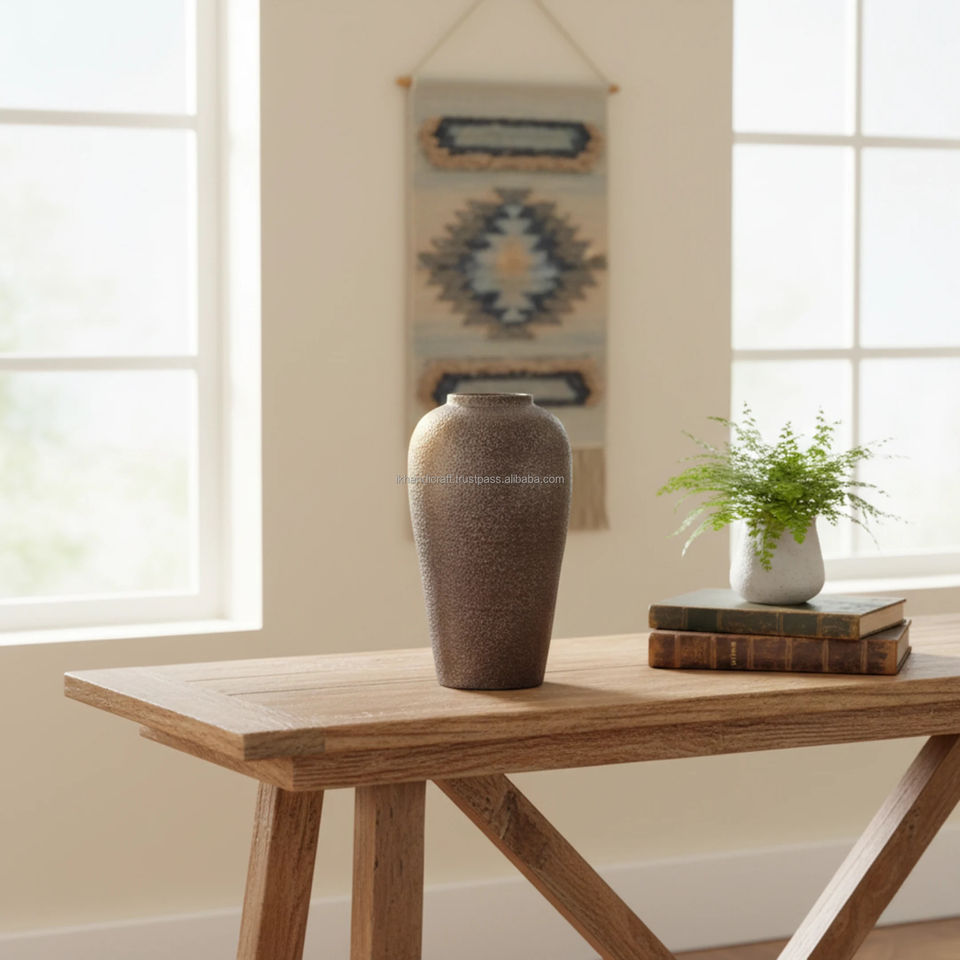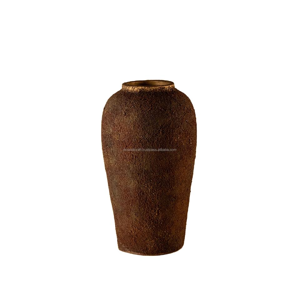 Wabi Sabi Style Brown Ceramic Vase Living Room Desktop for Modern Home Living Room Rustic Terracotta Vase