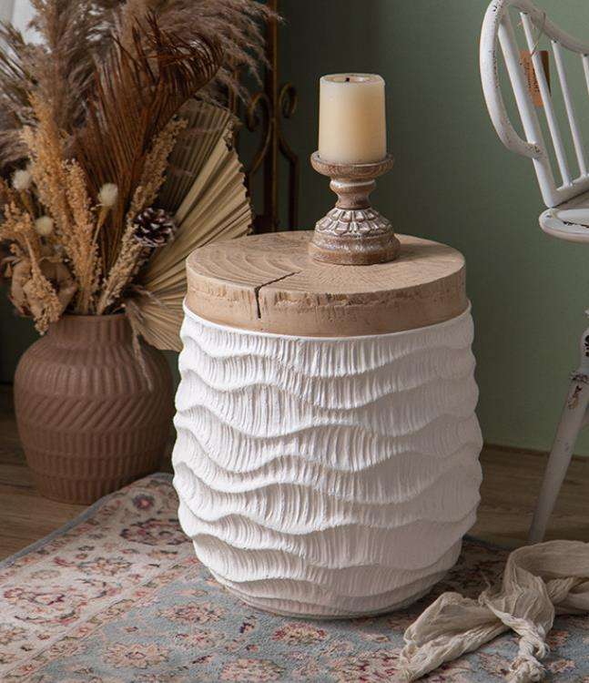 Wabi-sabi style living room sofa, a few corners retro small round table, a hotel bedside table wooden block decoration