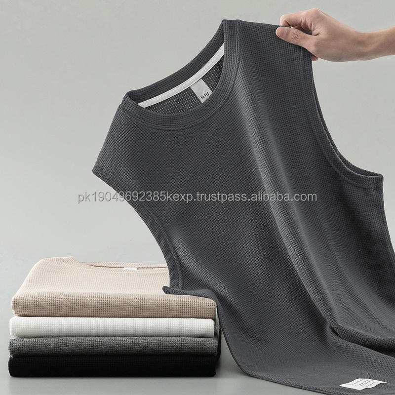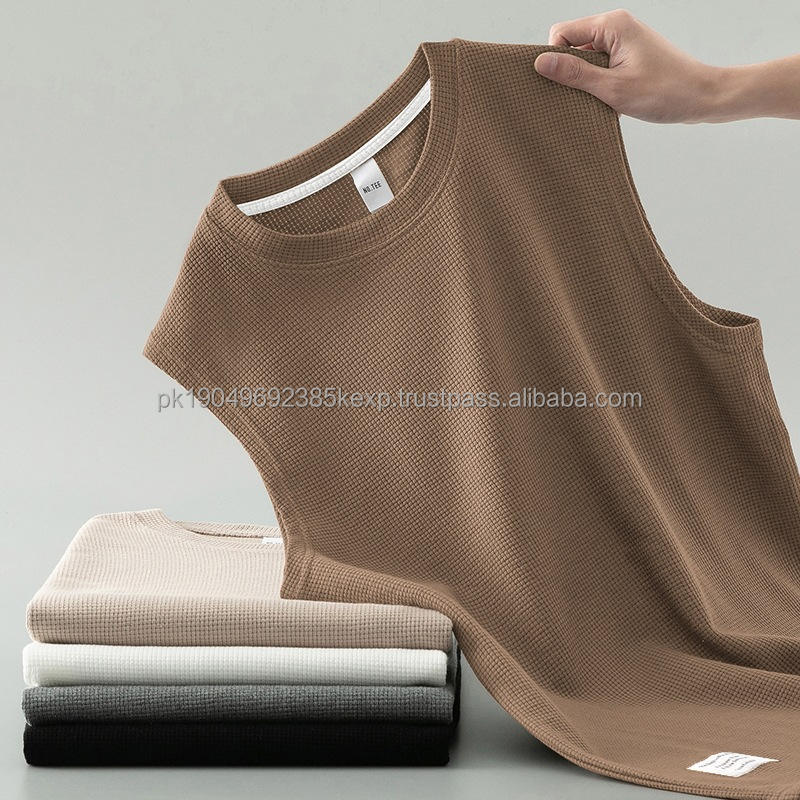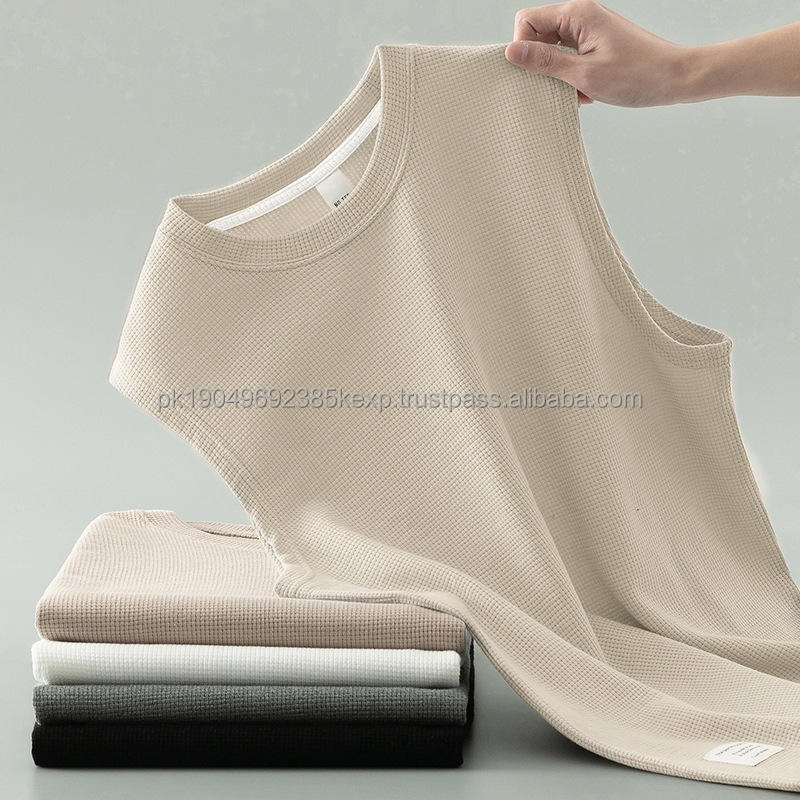 Waffle Vest Men's Summer Cotton Tank Top White Outerwear Sports Fitness Basketball Vest Wide Shoulder Sleeveless T-Shirt