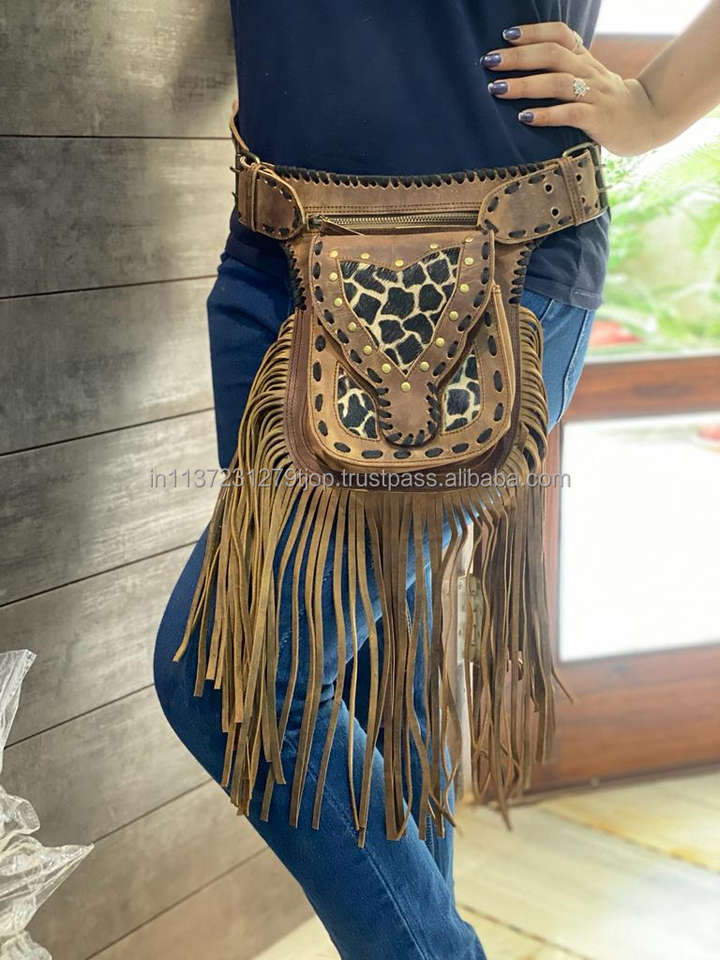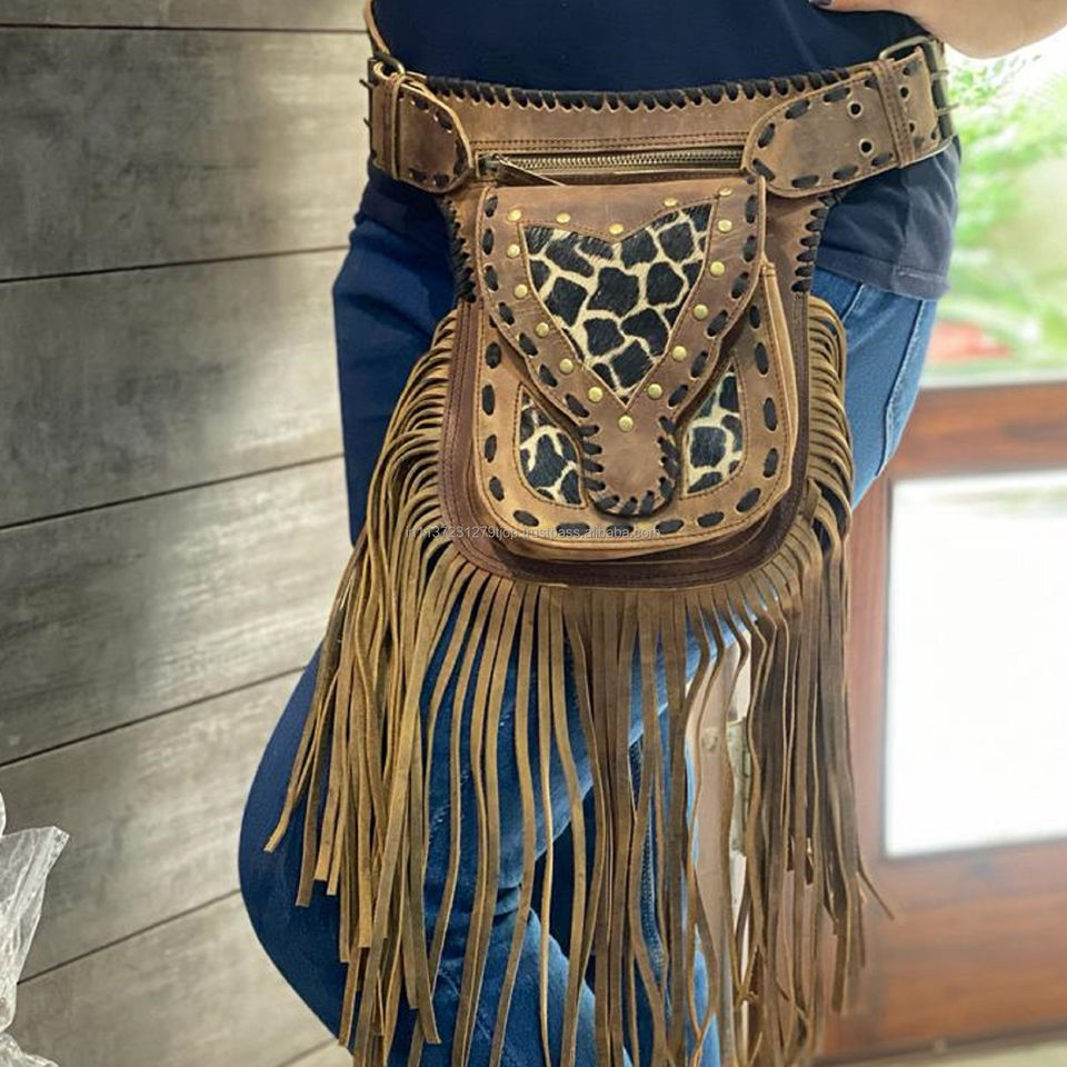 Waist Bags Unisex Leather Fringe Money Belt Motorcycle Belts Hip Pocket Bum Bags