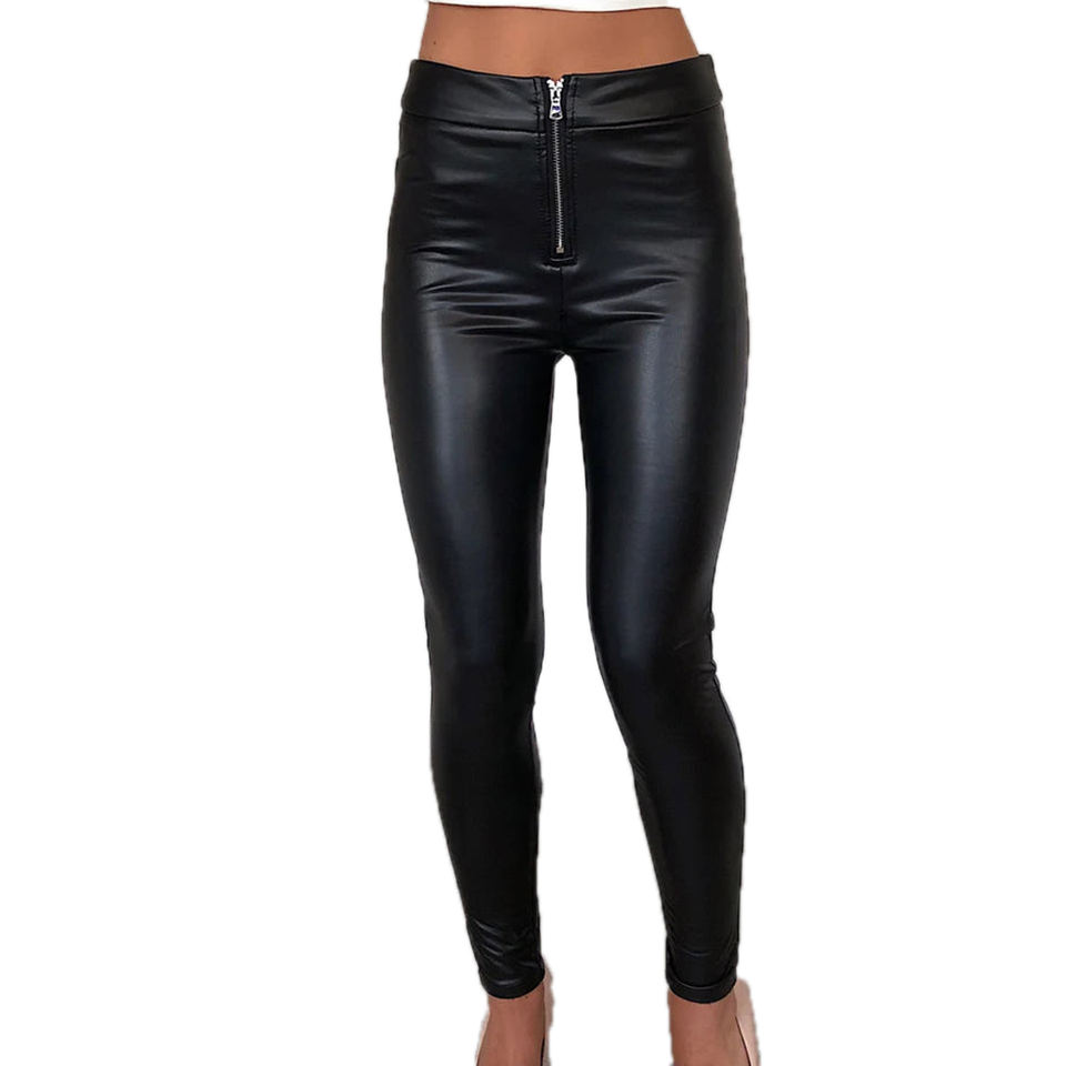 Waist Zip Up Leather Legging Pants Women Fashionable Leather Trouser Yoga Faux PU Leather Pants Ladies