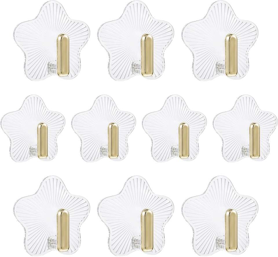 Wall Adhesive Transparent Star Golden Hook Traceless Waterproof Wall Hook Hanger for Bathroom Kitchen Office and Living Room