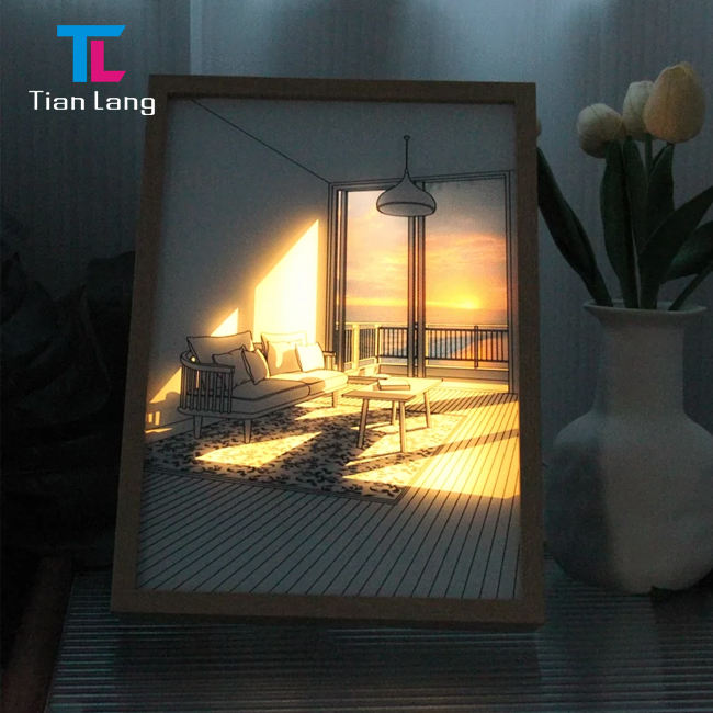 Wall Bedside Table Decorative 3d Frame Lamp Night Light Painting Wooden for Wood Stand Led Art Frame Light up Photo Acrylic