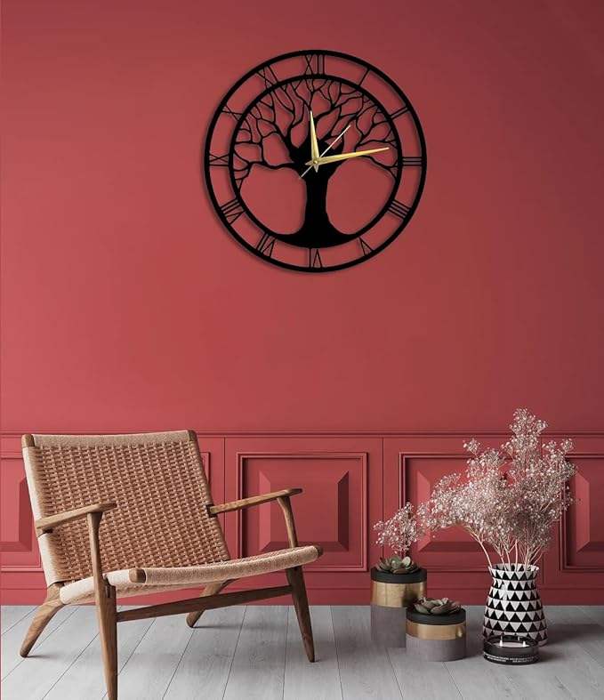 Wall Clock Round Shape Metal Analog Hanging Watch 15.5 Inch Big Size fo Living Room Bedroom Home Decor and Office Antique Modern