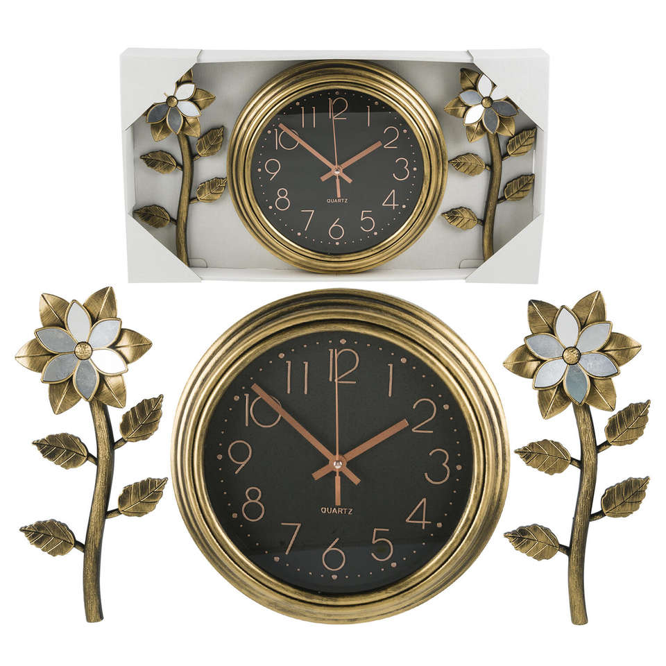 Modern 12'' Black and Gold Wall Clock Set Number Pattern Design