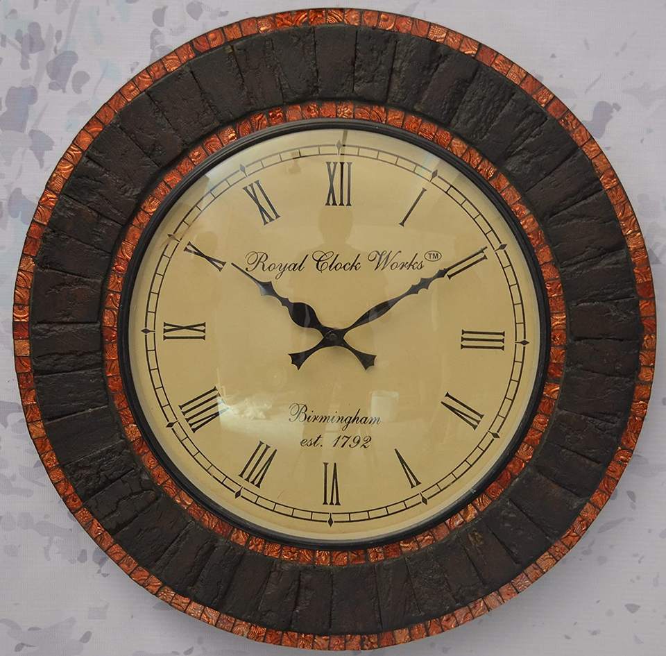 Wall Clock with Wood and Mirror Mosaic Wall Clock with Wood and Mirror Mosaic Handmade by Adiba Home Decor