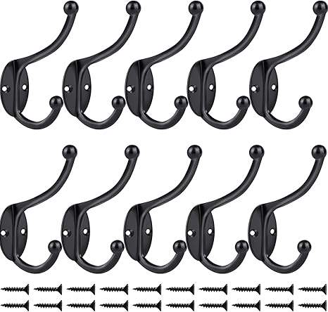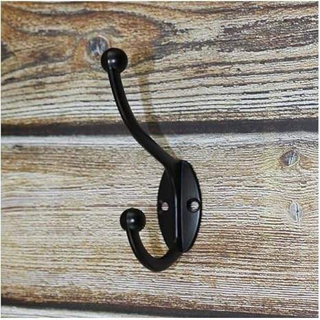 Wall Coat Hooks Double Robe Hooks for Hanging Coats Towels Keys Bags Hats Rust-Resistant Black Wall Mounted Hardware