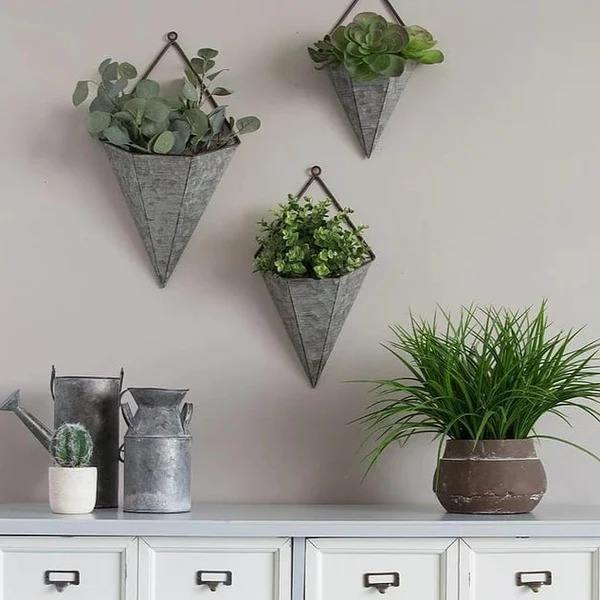 Wall Decor Half Conical Metal Hanging Planter for Farmhouse Style Hanging Wall Vase Planters Rustic Home Wall Decor