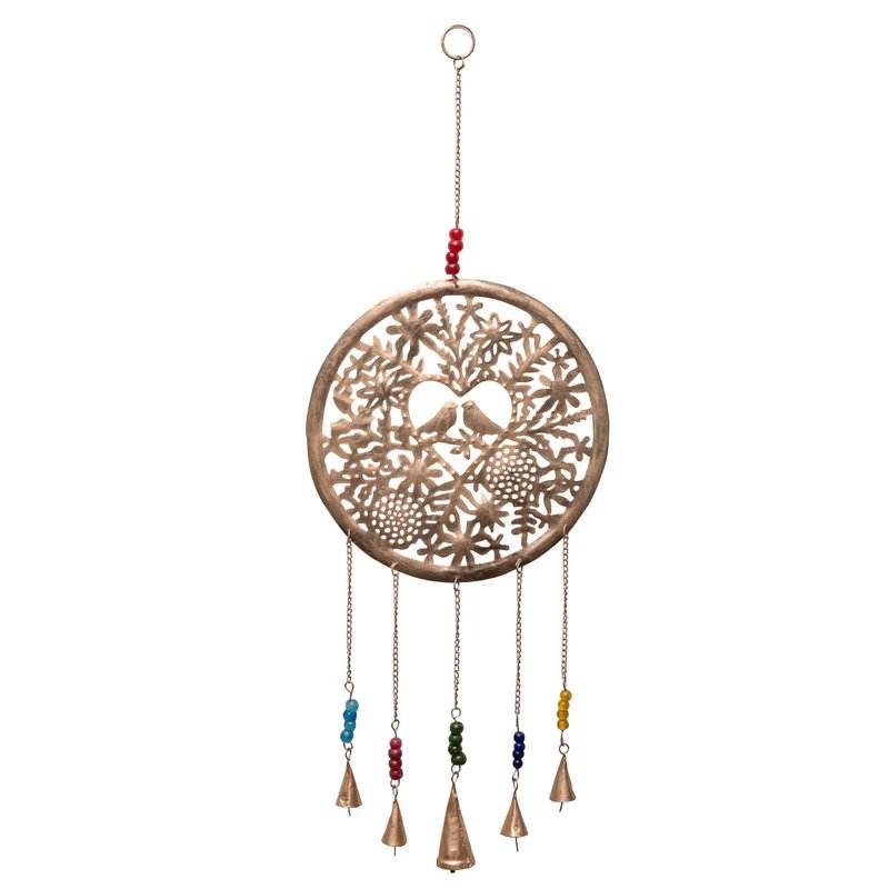 Wall Hanging Duli Metal Wind Chimes Multi Color Beads & Hanging Bells Gold Finished Wind Chimes for Outdoor Decor