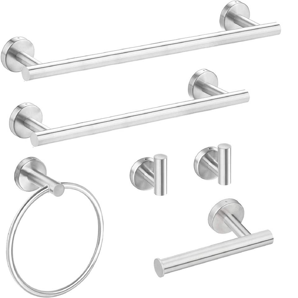 Wall Mount 6-Piece Stainless Steel Bathroom Towel Rack Set