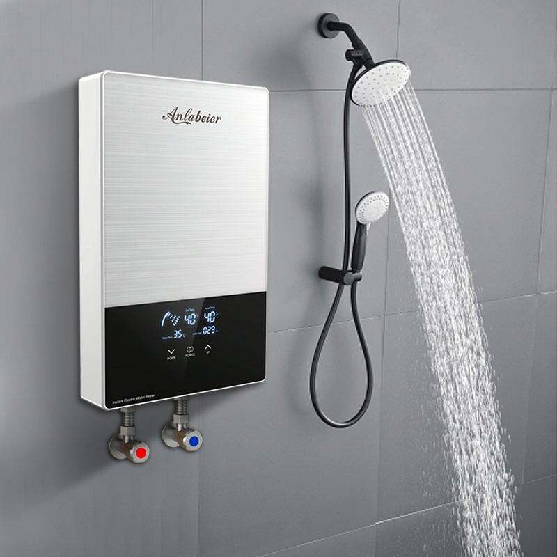 Wall Mounted 220V 12kW Tankless Electric Hot Water Heater Geyser Plastic Housing LED Temperature for Household Hotel Use English