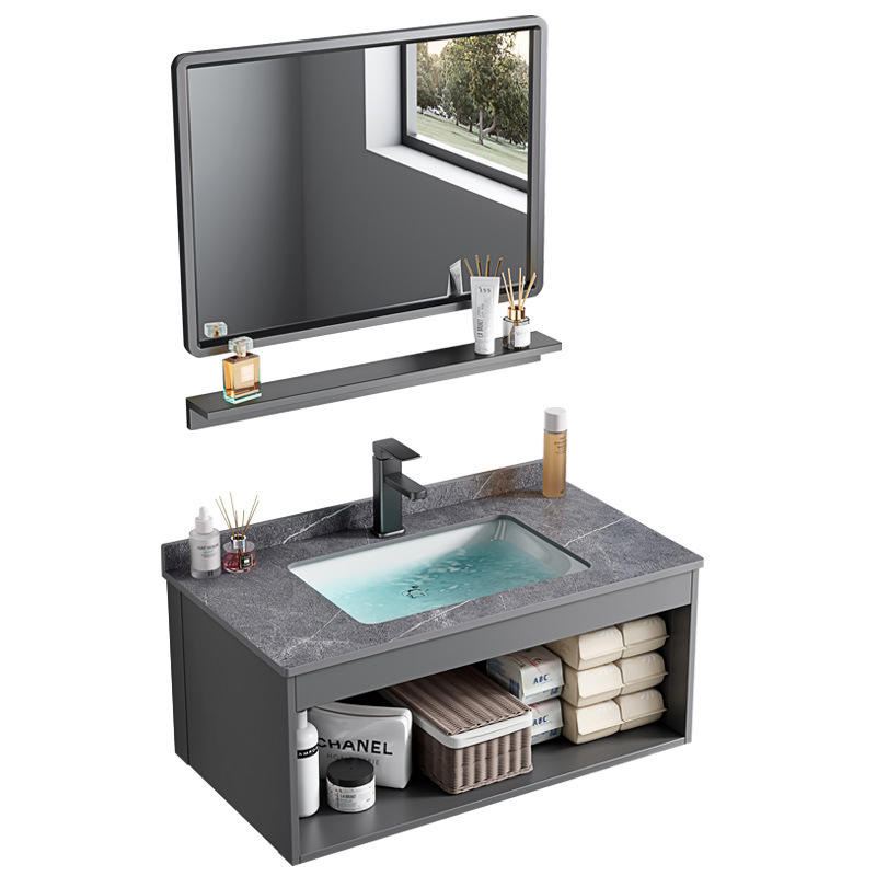Wall-Mounted Aluminum Alloy Grey Doorless Integrated Basin Cabinet One-Piece Ceramic Basin Small Apartment Bathroom Furniture