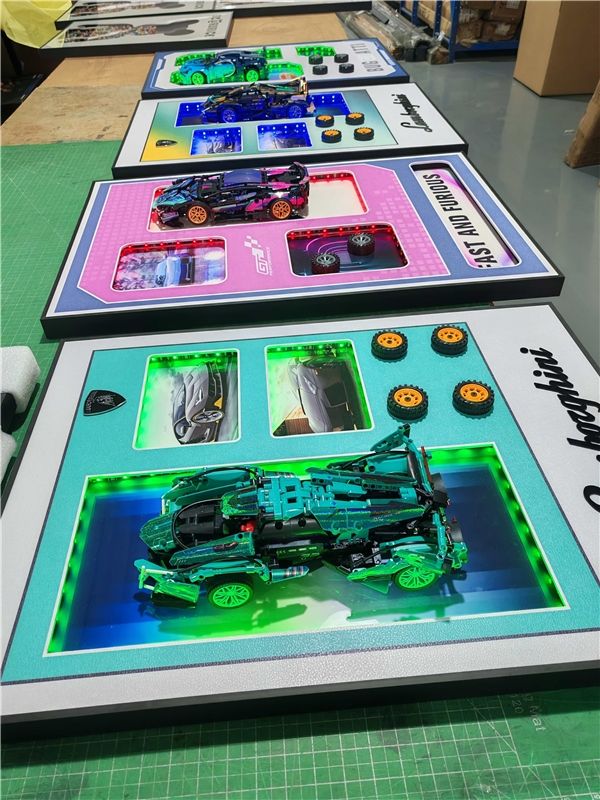 Wall-Mounted Aluminum Building Block Photo Frames for Living Room Decor Modern Design with LED Lights and Finished Components