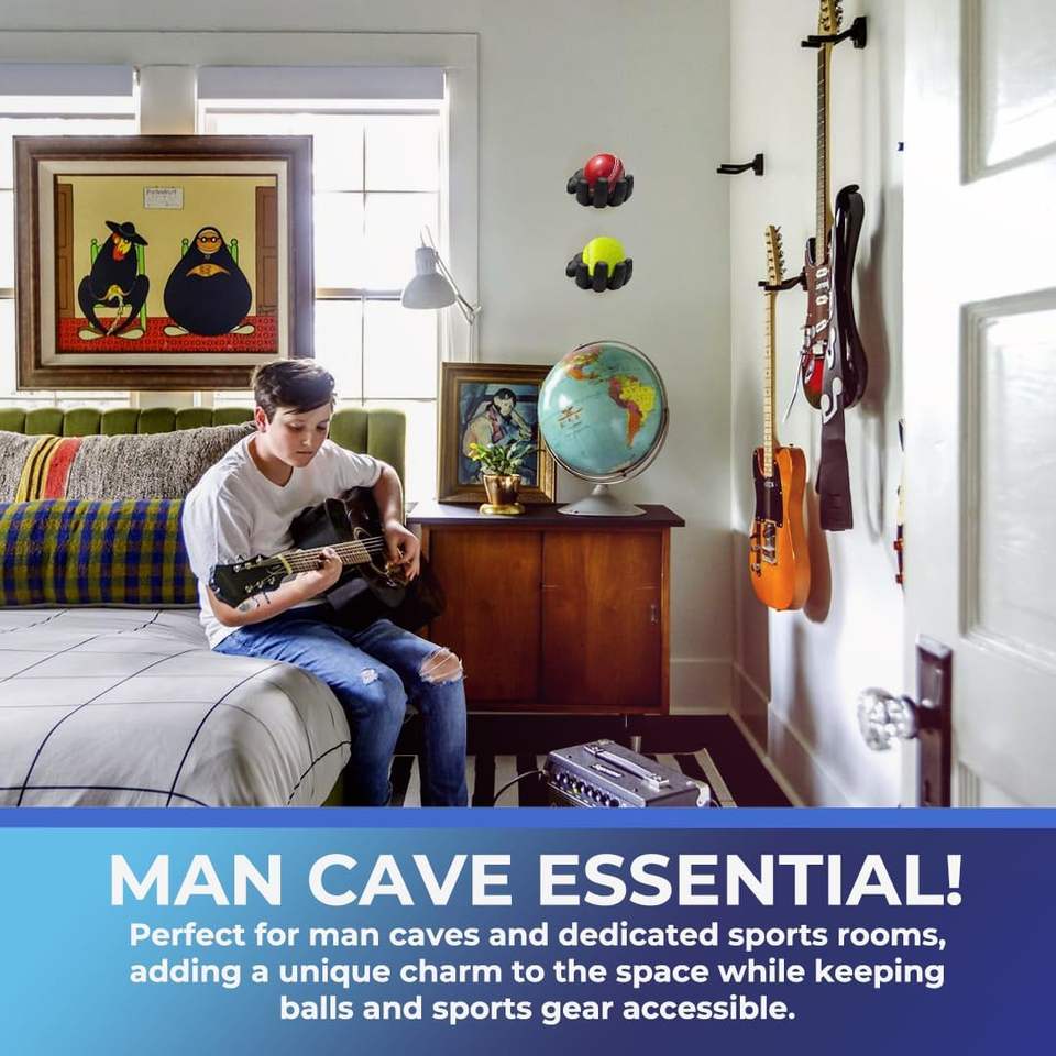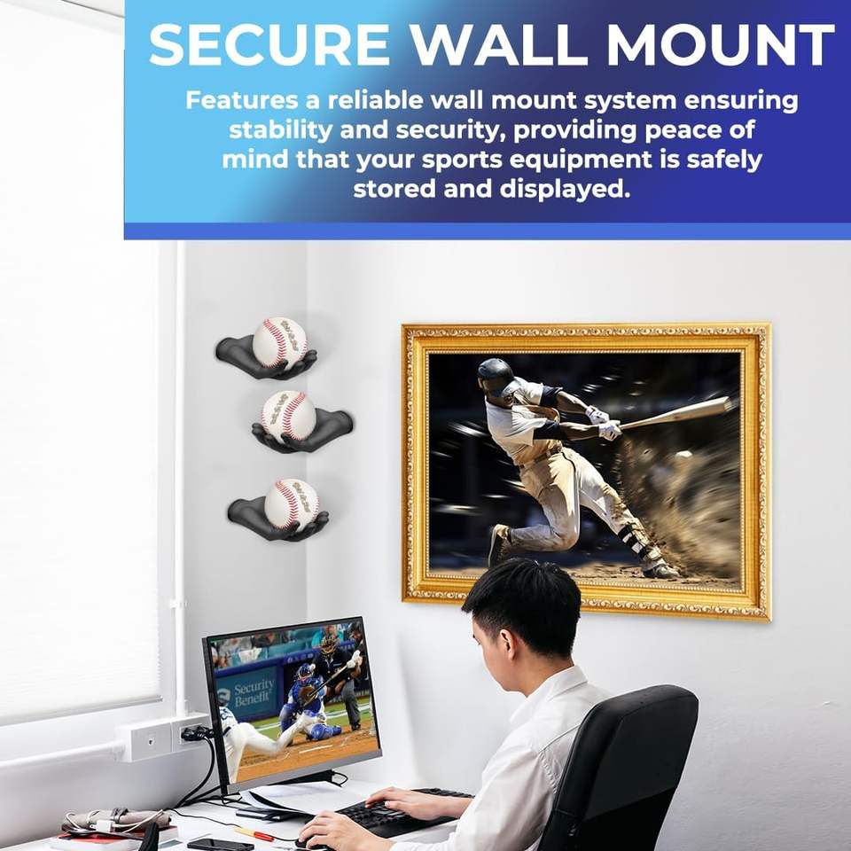 Hold My Ball Wall-Mounted Ball Holder for Baseballs Tennis Balls Cricket Balls-Black Sculptured Left/Right Hand Accessories