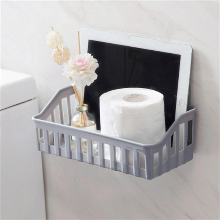 Wall Mounted Bathroom Storage Rack Rectangular PP Material No Drilling Required Minimalist Design For Toiletries