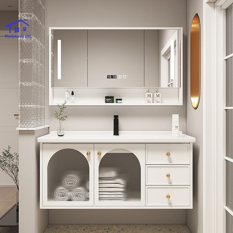 Wall-Mounted Bathroom Vanity Set with LED Mirror and Drawer Storage Modern Design for Villa Bathrooms