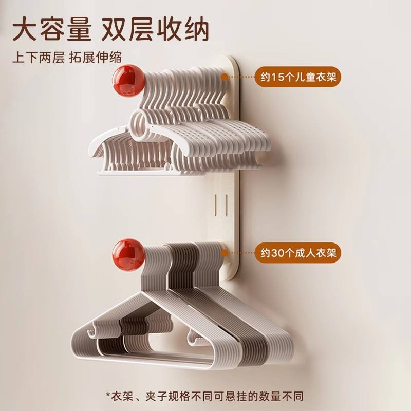 Wall Mounted Clothes Hanger Storage Rack Self-Adhesive Retractable For Bedroom Balcony Adult Kids Use