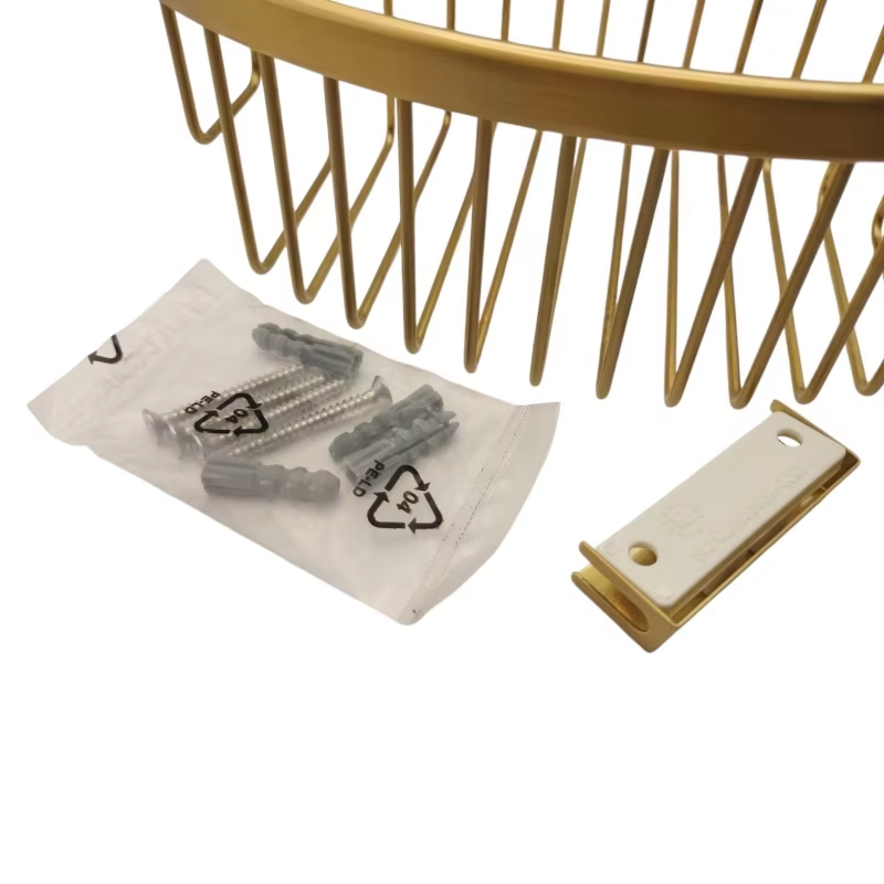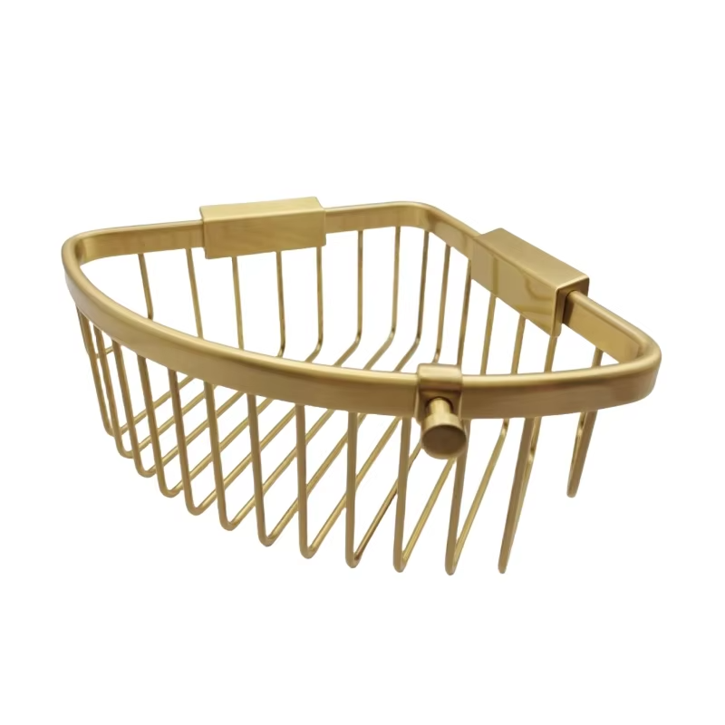 Wall Mounted Elegant Brass Golden Shower Basket Waterproof Rust-Resistant Design for Bathroom Storage Made of Durable Metal