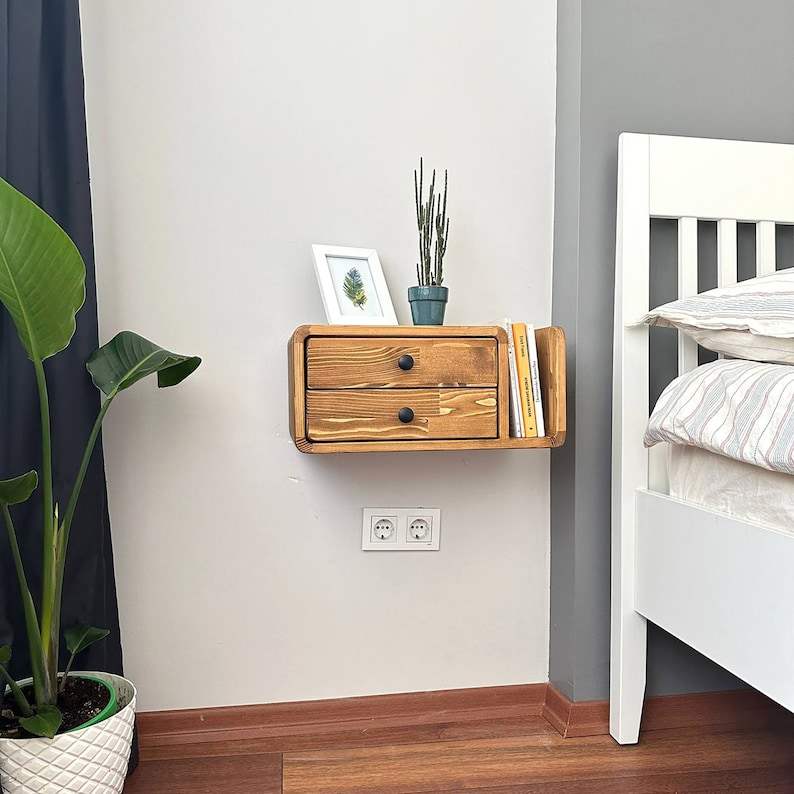 Wall Mounted Floating Drawer Nightstand Wooden Bedside Table Modern Bedroom Furniture Handmade Floating Shelf Space Storage