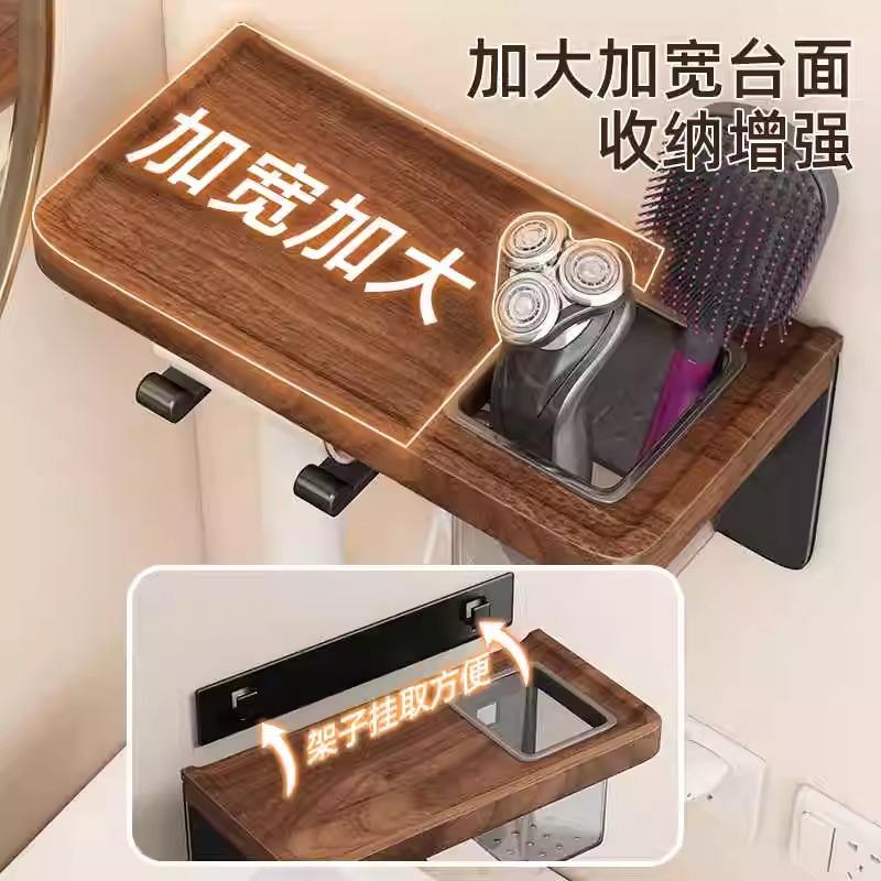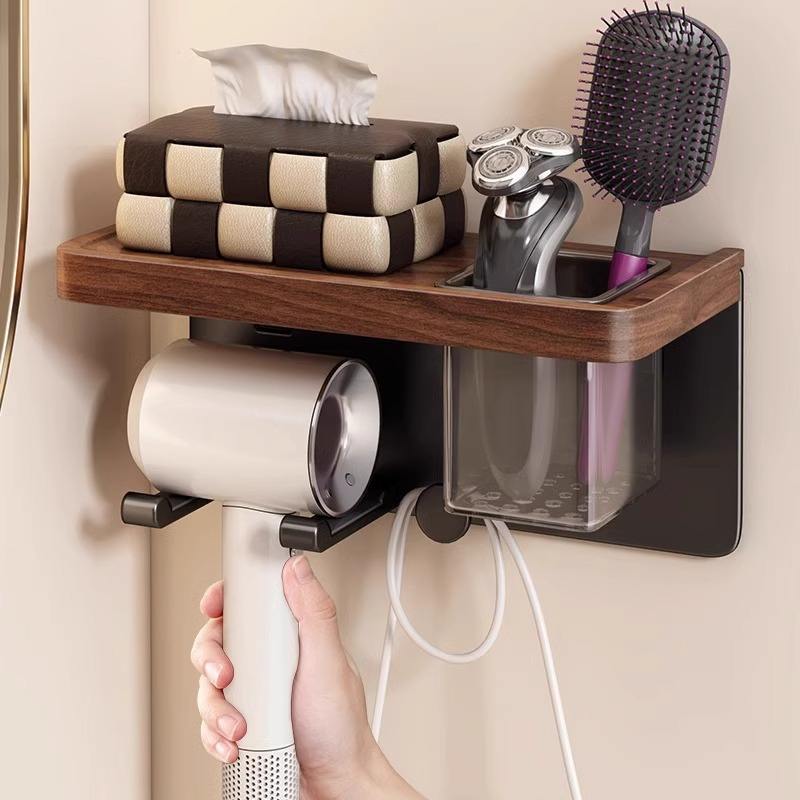 Wall Mounted Hair Dryer Rack With Shelf Storage Holder For Bathroom Toilet Classic Black Rectangle Easy Cleaning