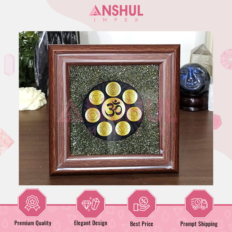 Product Name:Raw Pyrite with Om, Pyrite Dust Plate, Pyrite Frame