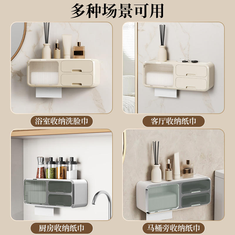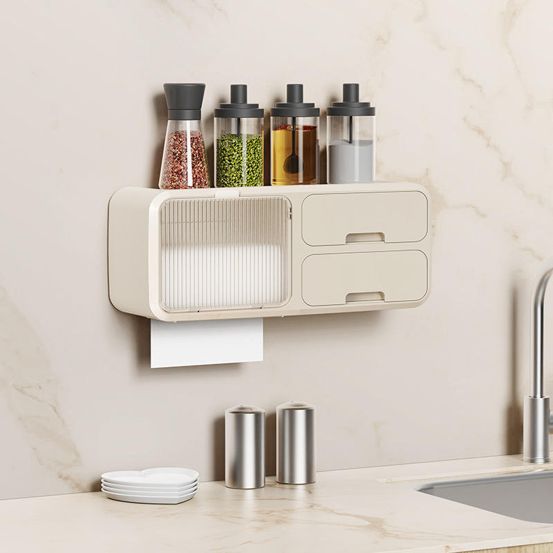 Wall Mounted Kitchen Storage Rack Rectangle Condiment Organizer With Tissue Holder For Cabinet Use