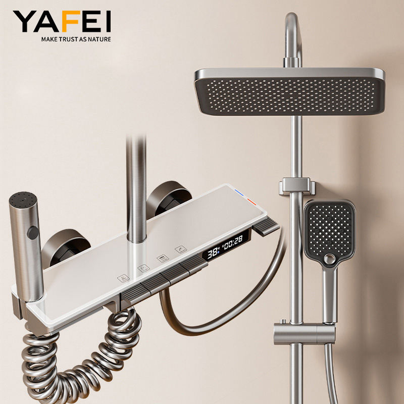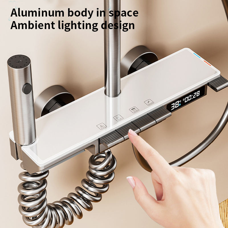 Wall-Mounted Light Bathroom Bathtub Rain Shower Faucet Bath Luxury Led Digital Shower Set