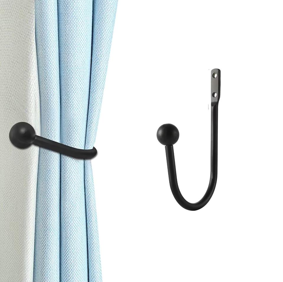 Wall Mounted Metal Black Drapery Tiebacks With Pine Cone Finial Decorative Curtain Holders for Bedroom Living Room