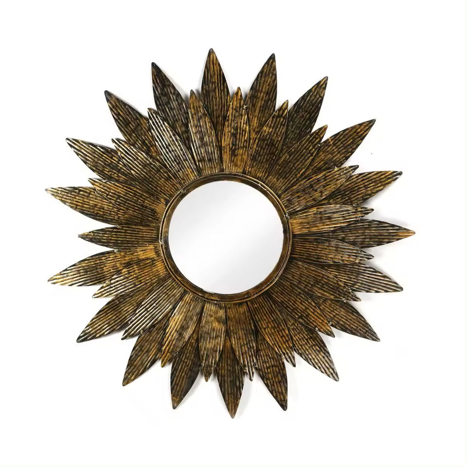 Wall-Mounted Mirrors Home Decoration Metal Leaf Frame Wall Mirror Round Framed Decorative Wall Hanging Mirror from India