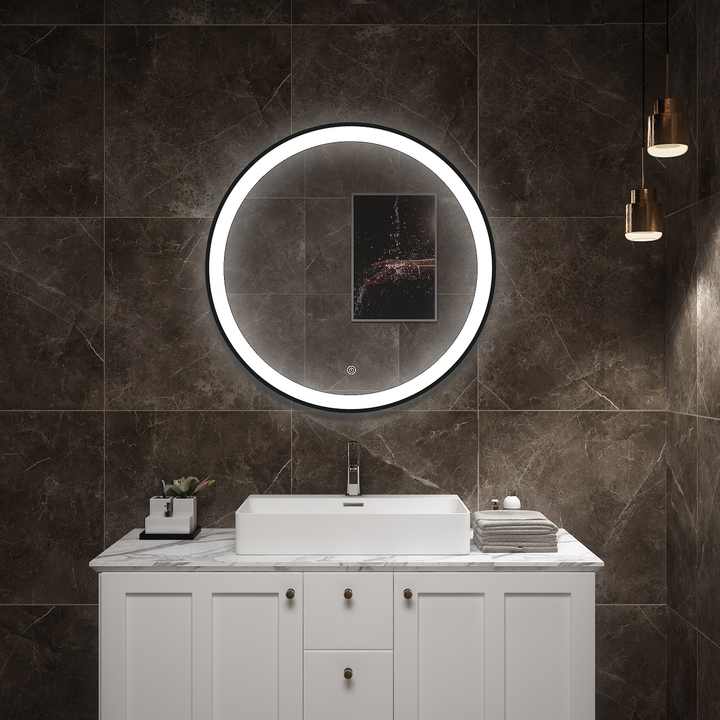 Wall Mounted Oval Frameless Bathroom Mirror with Dual-Lit LED Bluetooth Speaker Smart Anti-Fog and Dimmable Light