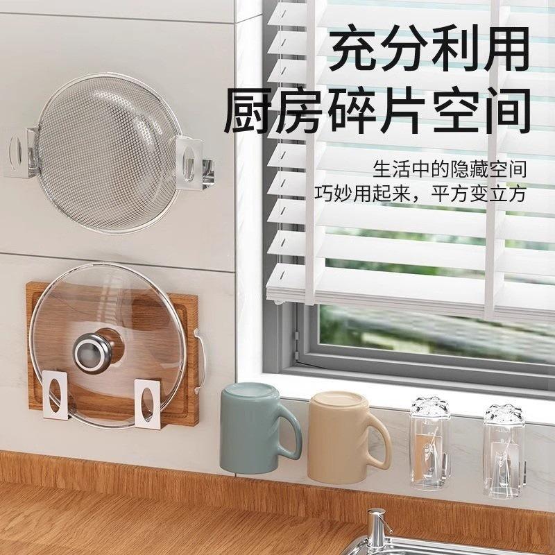 Wall Mounted Pot Lid Rack Stainless Steel With Hooks For Kitchen Storage Organization Rectangle Shape Hanging Design