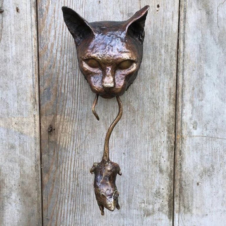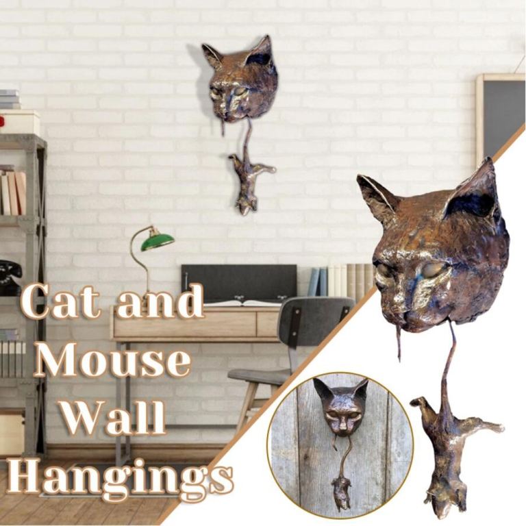 Wall Mounted Sculpted Bronze Cat Face With Hanging Rat Tail Hanging Decor Sculpture And Figure Wall Showpiece Home Decoration