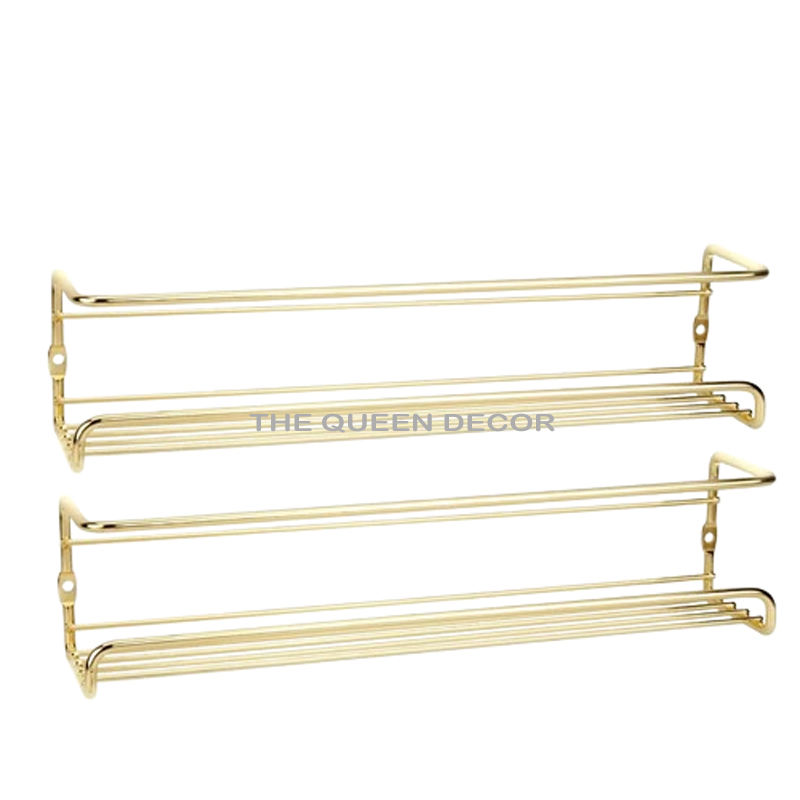 Wall Mounted Unique Shaped Gold Antique Finished Storage Shelve Spice Rack Sets 2 Stainless Steel Metal Storage Holders Racks