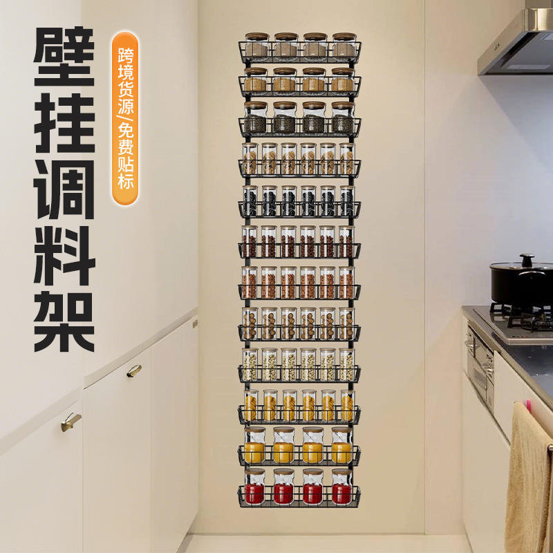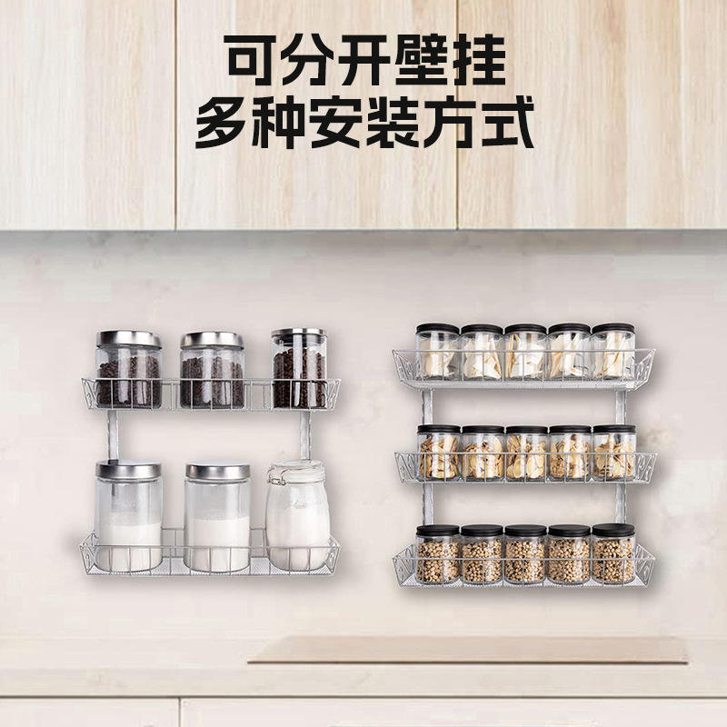 Wall Mounted Spice Rack Multi Layer Large Capacity Condiment Storage Kitchen Organizer