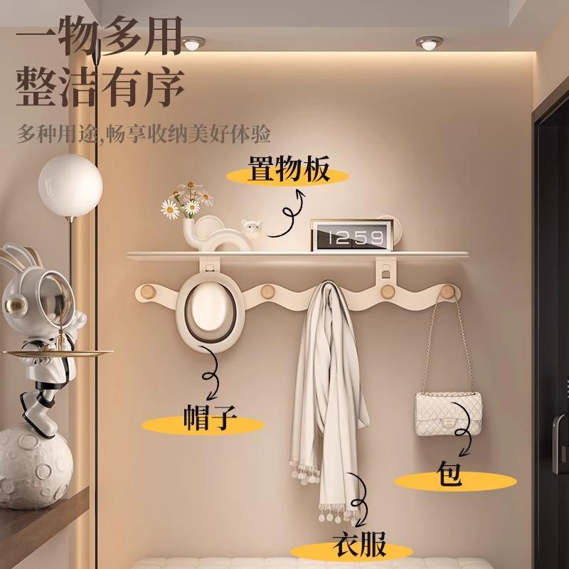Wall Mounted Storage Rack With Hooks Self Adhesive Entryway Coat Rack For Home Use