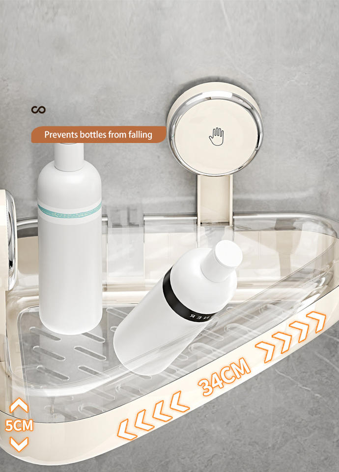 Plastic Suction Cup Wall Mounted Bath Small Corner Shelf Rack clear Acrylic Bathroom Shower Caddy with Hooks