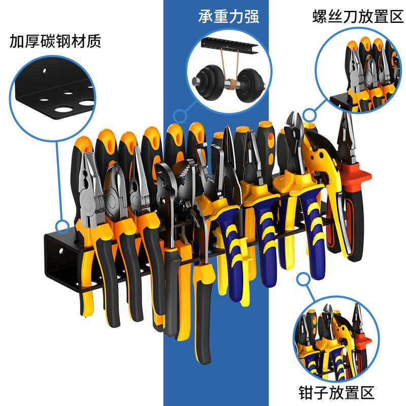 Wall Mounted Tool Storage Rack Carbon Steel Multi Functional Organizer For Workshop Garage Pliers Screwdrivers Tools