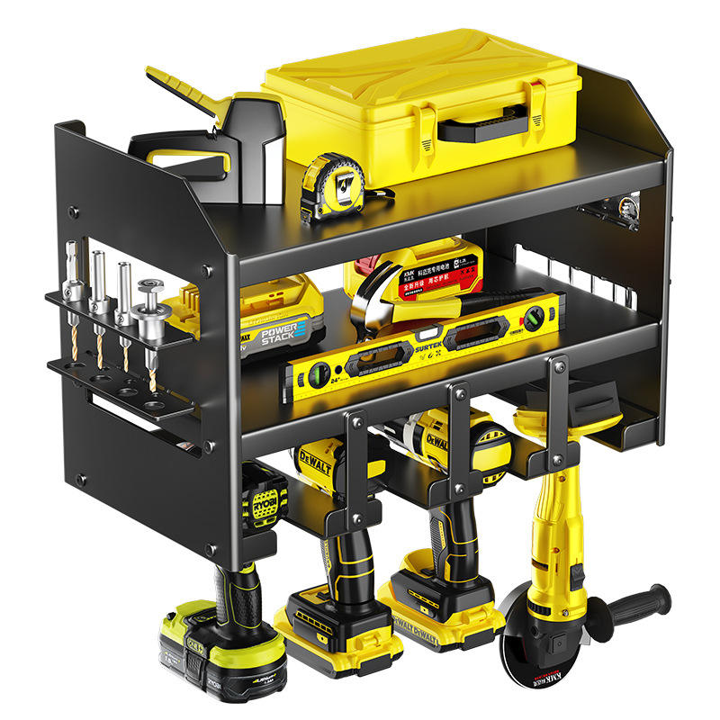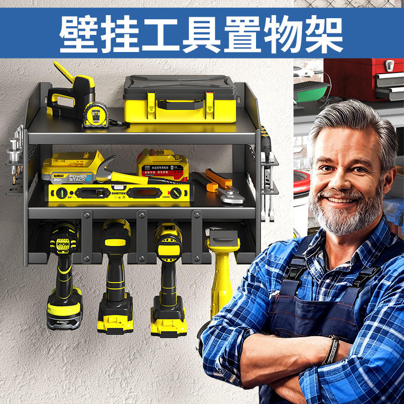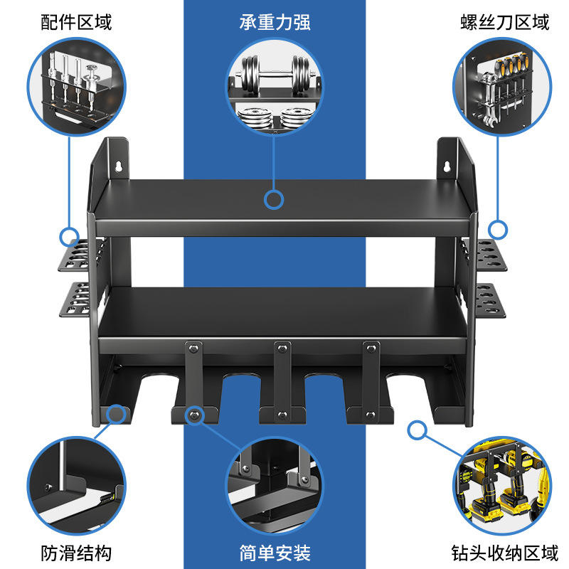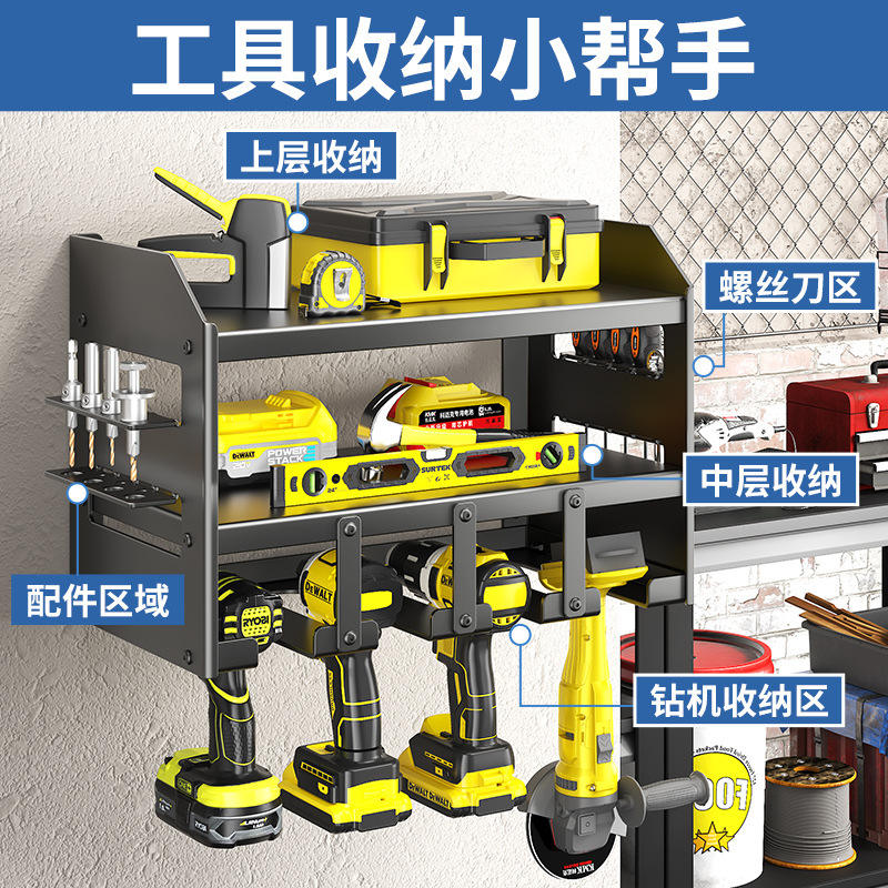 Wall Mounted Tool Storage Rack Carbon Steel Heavy Duty Garage Organizer With Screwdriver And Drill Holder For Workshop Use