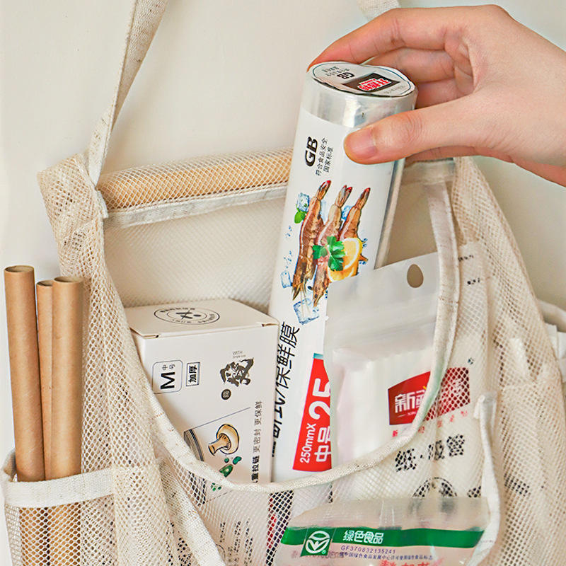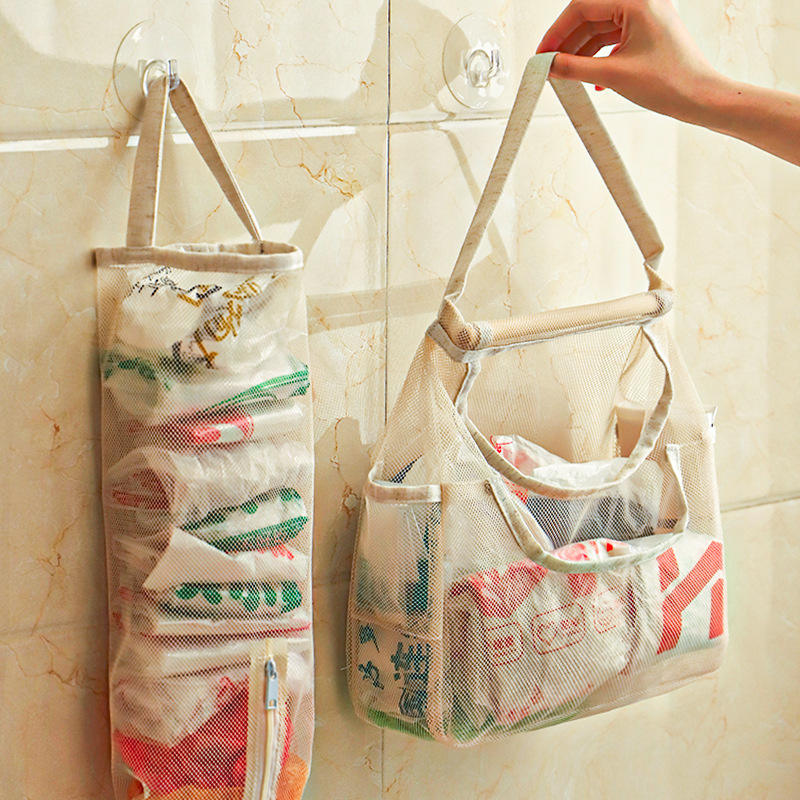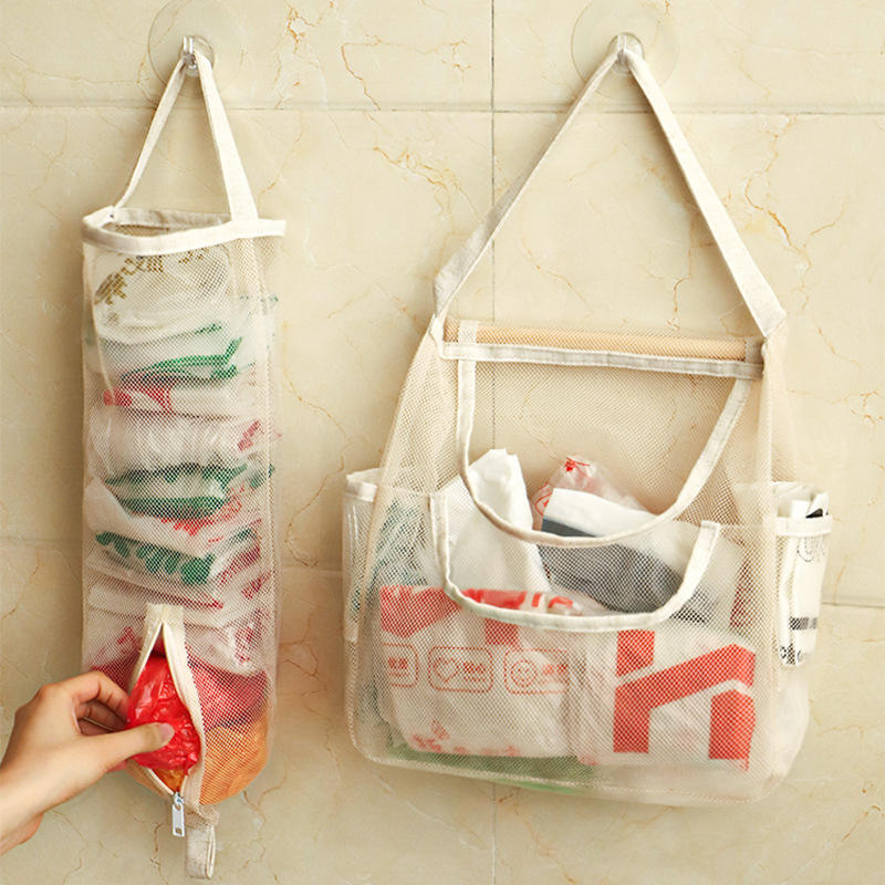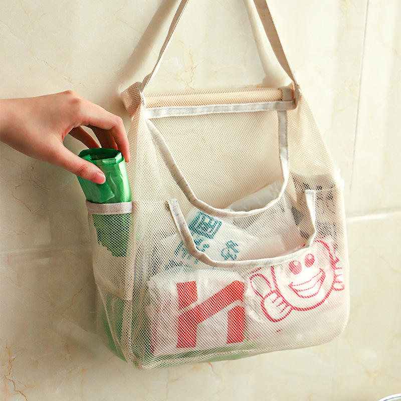 Wall Mounted Trash Bag Organizer Mesh Storage Bag For Kitchen Bathroom Home Dormitory Hanging Organizer With Zipper Pocket