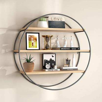Wall Shelf Style Living Room Wall Hanging Iron Shelf Solid Wood Shelves Partition Wall Round Floating Display Stand Bookcase