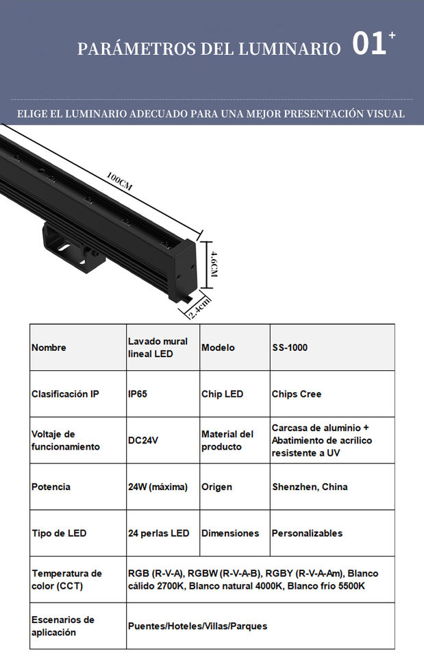Wall Washer SS-1000 100Lm/w RGBW DC24V IP65 Multi-functional Dimmable Factory Direct Price Hotel Corridor Small Batch Custom