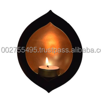 Handmade Modern Tea Light Candle Holder Wall-mounted Black Metal with inside Gold for Easter and Christmas