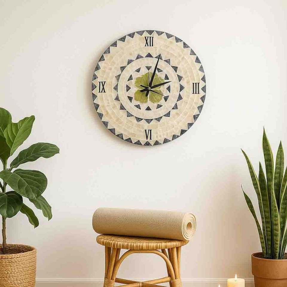 Wall decoration mosaic mother of pearl wall-mounted clock pearls inlay analog roman numeric clocks