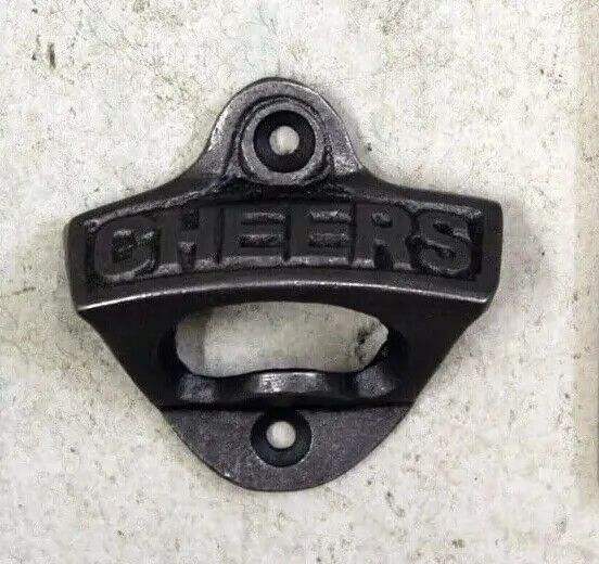 Wall mounted metal bottle opener with old-world charm and robust build ideal for bar areas and rustic kitchens